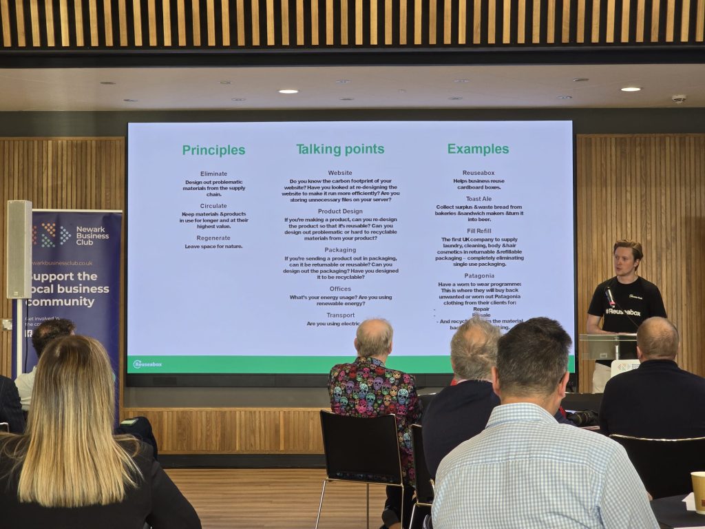 A circular economy is the future of business and aims to eliminate, circulate and regenerate. Jack challenged us all to think about how Newark On Trent could be the first circular town and how our businesses and lives, could operate in a more sustainable way. How could you help Newark On Trent become the first circular town?