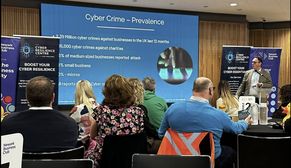 First to present was the sponsor, The Cyber Resilience Centre for the East Midlands. Colin Ellis, Managing Director, spent 22 years as a Police Officer including working in the National Crime Agency and is an accredited counter fraud manager. He shared some shocking statistics that cyber crime costs the economy £27 billion each year with the average cost of each attack to business at £15,300.